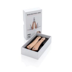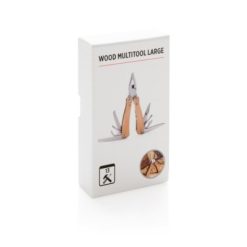 Trwałe i wytrzymałe narzędzie wielofunkcyjne, wykonane z wysokiej jakości stali nierdzewnej, uchwyt z drewna bukowego, 13 funkcji: długie szczypce, kombinerki, przecinak do kabli i drutu, ostrze ząbkowane, otwieracz do butelek, duży śrubokręt płaski, śrubokręt krzyżakowy, nóż, piła, mały śrubokręt płaski, otwieracz do puszek, średni śrubokręt płaski, pilnik, w ozdobnym pudełku, ślad węglowy produktu: 1,01 kg CO2