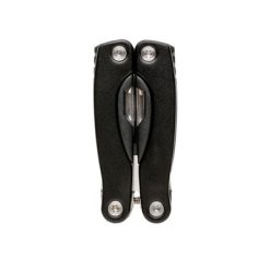 Narzędzie wielofunkcyjne, wykonane z aluminium, uchwyt z czarnymi detalami, 14 funkcji, czarny pokrowiec 600D w komplecie, ślad węglowy produktu: 2,53 kg CO2