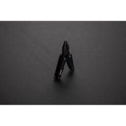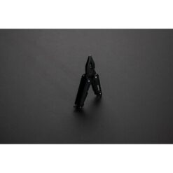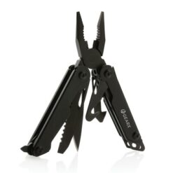 Narzędzie wielofunkcyjne, aluminiowa obudowa, narzędzia wykonane z wytrzymałej stali nierdzewnej 420, funkcje: nóż z blokadą, pilnik, piła, duży śrubokręt płaski z blokadą, śrubokręt krzyżakowy, śrubokręt płaski, szczypce, kombinerki, przecinak do kabli i drutu, otwieracz do butelek, śrubokręt, przecinak do pasów, otwieracz do kartonów, w pudełku podarunkowym, ślad węglowy produktu: 3,08 kg CO2