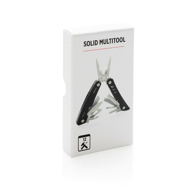 Narzędzie wielofunkcyjne Solid, 12 el. z nadrukiem Twojego logo, materiał: aluminium, stal nierdzewna, stal, kolor: czarny