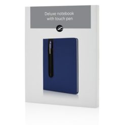 Notatnik A5 Deluxe, touch pen z nadrukiem Twojego logo, materiał: papier, stal nierdzewna, stal, kolor: niebieski