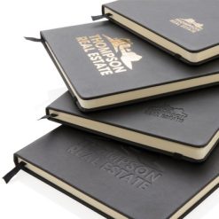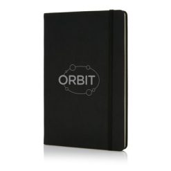 Notatnik A5 Deluxe, twarda okładka z nadrukiem Twojego logo, materiał: papier, poliester, kolor: czarny