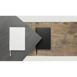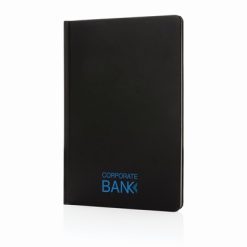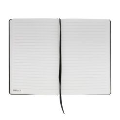 Notatnik A5, twarda okładka z nadrukiem Twojego logo, materiał: papier, kolor: czarny