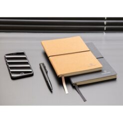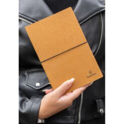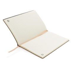 Notatnik A5 (80 kremowych kartek 75 g/m2 w linie), okładka wykonana ze skóry pochodzącej z recyklingu, ślad węglowy produktu: 0,44 kg CO2
