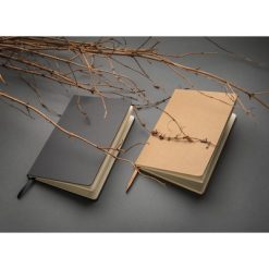 Notatnik A5, (80 kremowych kartek w linie), twarda okładka, okładka oraz strony wewnętrzne posiadają certyfikat FSC® (Forest Stewardship Council), tasiemka zakładkowa, ślad węglowy produktu: 0,52 kg CO2