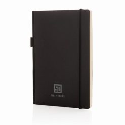 Notatnik A5, twarda okładka z nadrukiem Twojego logo, materiał: papier, kolor: czarny