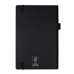 Notatnik A5, (80 kremowych kartek w linie), twarda okładka, okładka oraz strony wewnętrzne posiadają certyfikat FSC® (Forest Stewardship Council), tasiemka zakładkowa, elastyczna pętla na przybory do pisania, z tyłu kieszonka na luźne notatki, ślad węglowy produktu: 0,55 kg CO2