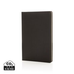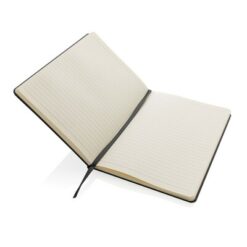 Notatnik A5, (80 kremowych kartek w linie), twarda okładka, okładka oraz strony wewnętrzne posiadają certyfikat FSC® (Forest Stewardship Council), tasiemka zakładkowa, ślad węglowy produktu: 0,52 kg CO2