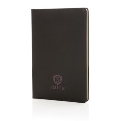 Notatnik A5, twarda okładka z nadrukiem Twojego logo, materiał: papier, kolor: czarny