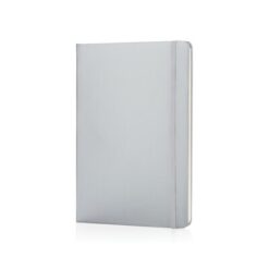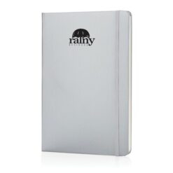 Notatnik A5, twarda okładka z nadrukiem Twojego logo, materiał: papier, kolor: srebrny