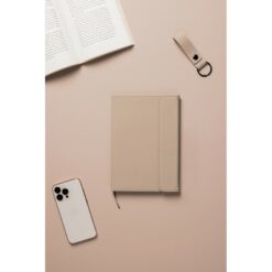 Notatnik A5 (80 kartek w linie o gramaturze 70 g/m2), okładka wykonana z PU z recyklingu, kartki z papieru makulaturowego