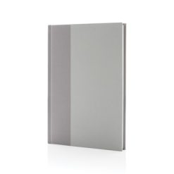 Notatnik (80 białych kartek 80 g/m2 w linie), twarda okładka, wykonany z materiałów pochodzących z recyklingu z certyfikatem GRS, całkowita zawartość materiałów z recyklingu obliczona w oparciu o wagę całkowitą przedmiotu: 99%, ślad węglowy produktu: 0,56 kg CO2