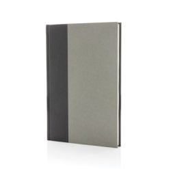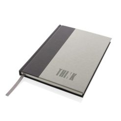 Notatnik (80 białych kartek 80 g/m2 w linie), twarda okładka, wykonany z materiałów pochodzących z recyklingu z certyfikatem GRS, całkowita zawartość materiałów z recyklingu obliczona w oparciu o wagę całkowitą przedmiotu: 99%, ślad węglowy produktu: 0,56 kg CO2