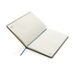 Notatnik A5 (72 kremowe kartki 70 g/m2 w linie), wykonany z papieru makulaturowego, tasiemka zakładkowa i elastyczna opaska do zamykania, ślad węglowy produktu: 0,52 kg CO2