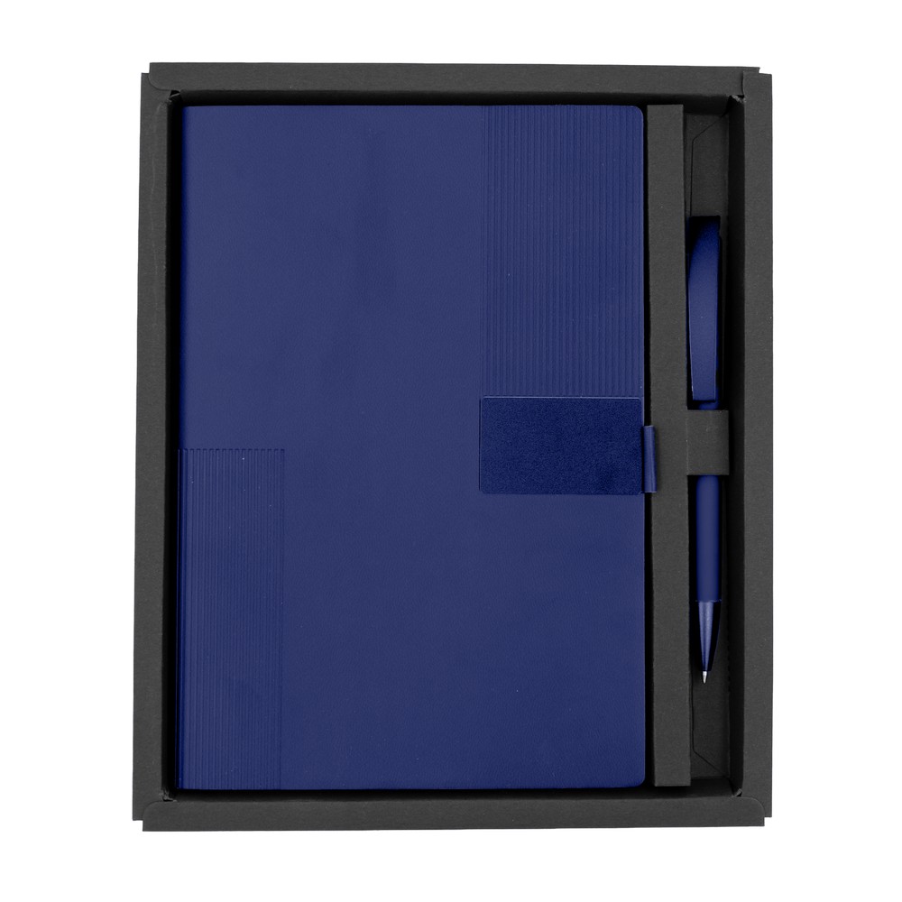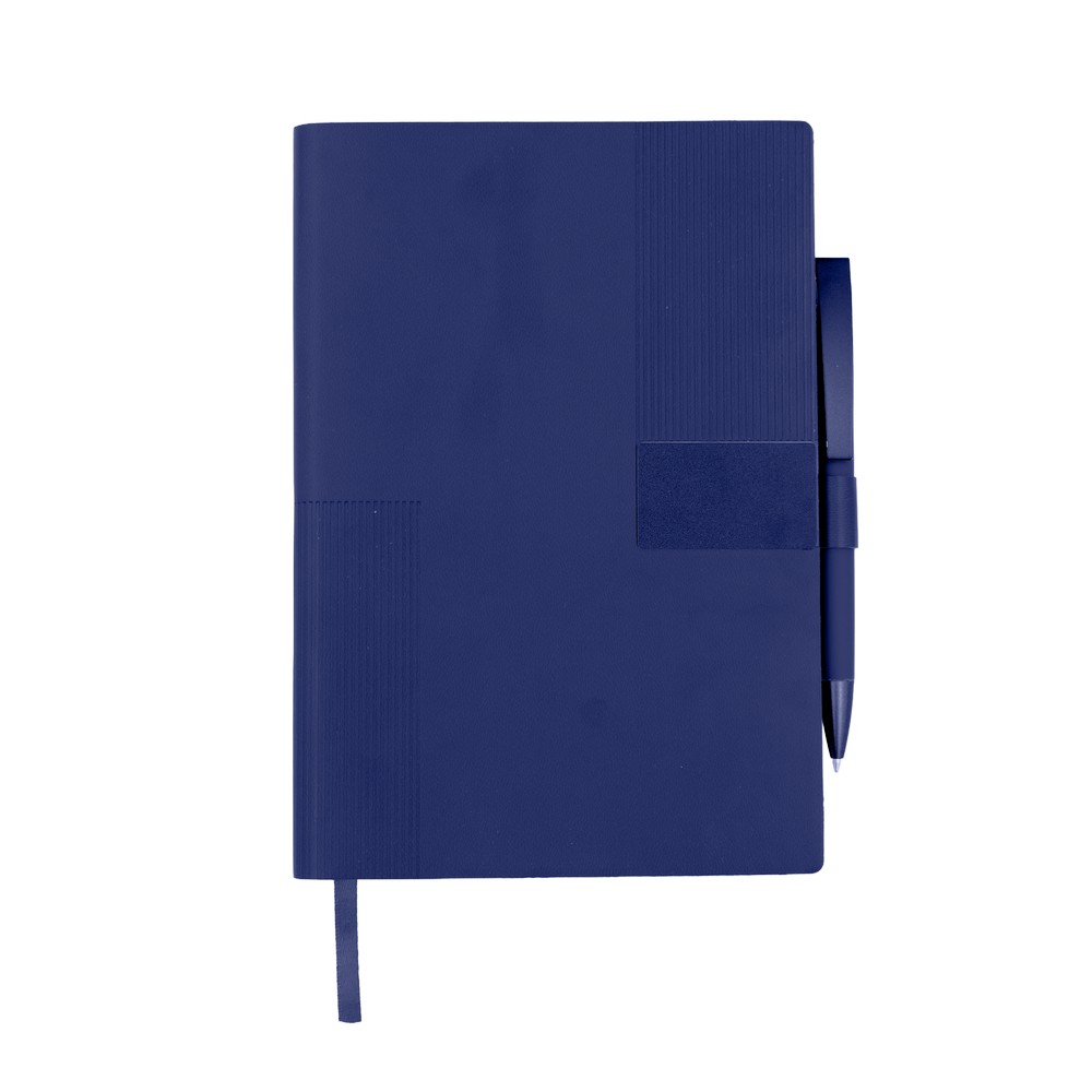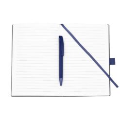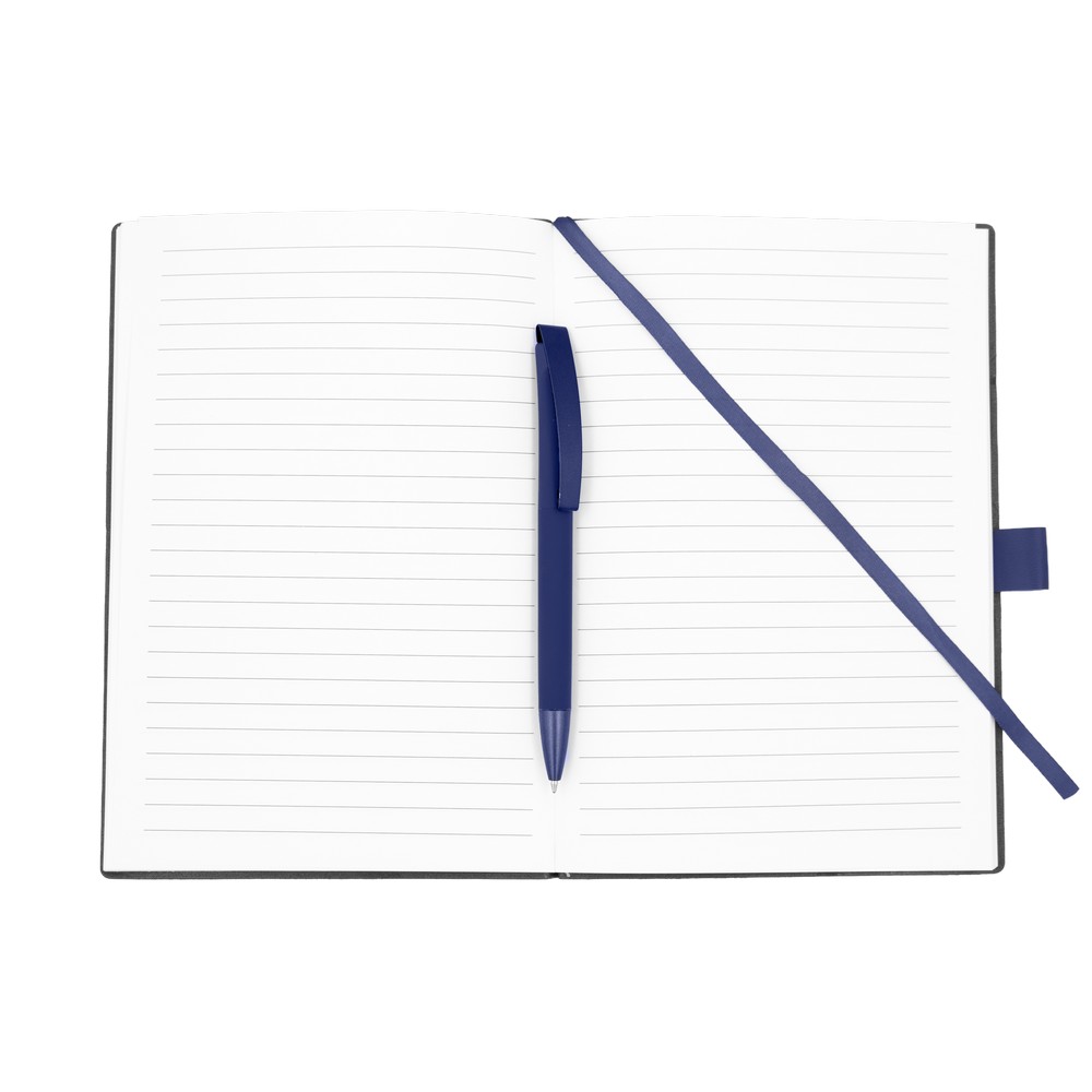 Notatnik w formacie ok. A5 posiada 80 kartek w linie (70 g/m²), tasiemka zakładkowa umożliwia wygodne zaznaczanie ostatniej strony lub ważniejszych notatek, w komplecie długopis typu „twist” z szerokim aluminiowym klipem przeznaczonym do grawerowania, przy szlufce na długopis znajduje się metalowa plakietka do grawerowania, twarda okładka wykonana z PU