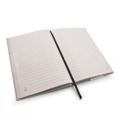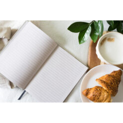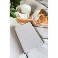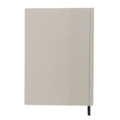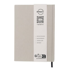 Notatnik B’RIGHT w formacie ok. A5, posiada 80 kartek w linie (160 stron), tasiemka zakładkowa umożliwia wygodne zaznaczanie ostatniej strony lub ważniejszych notatek, twarda okładka wykonana z bawełny z recyklingu, kartki z papieru z recyklingu