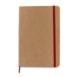 Notatnik w formacie ok. A5, posiada 96 kremowych kartek w linie (192 strony), tasiemka zakładkowa umożliwia wygodne zaznaczanie ostatniej strony lub ważniejszych notatek, dodatkowe zamknięcie w postaci kolorowej elastycznej opaski, twarda okładka wykonana z kartonu z recyklingu