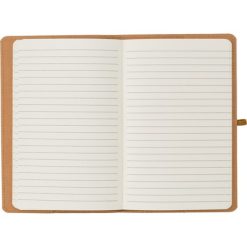 Notatnik (ok. A5, 96 kartek w linie), miękka okładka, przeszycia na brzegach okładki, miejsce na przybory do pisania (nie dołączone)