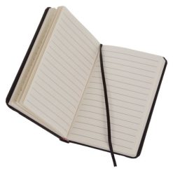 Notatnik w kieszonkowym formacie ok. A6, posiada 96 kartek w linie (192 strony), tasiemka zakładkowa umożliwia wygodne zaznaczanie ostatniej strony lub ważniejszych notatek, dodatkowe zamknięcie w postaci dopasowanej kolorystycznie elastycznej opaski, twarda okładka wykonana z PU