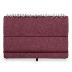 Notatnik RPET (ok. A5, 70 kartek w linie), stojak na telefon, stojak na tablet, twarda okładka, spiralne bindowanie, elastyczna opaska do zamykania, uchwyt na długopis