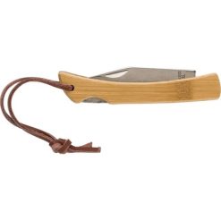 Nóż składany z nadrukiem Twojego logo, materiał: pu, bambus, stal nierdzewna, stal, kolor: brązowy