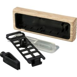 Odświeżacz do samochodu, 2 pojemniczki z zapachem drzewa sandałowego po 3 g, klips ułatwiający przypięcie w samochodzie, zapakowany pojedynczo w brązowy kartonik, produkt wykonany z drewna bukowego
