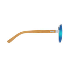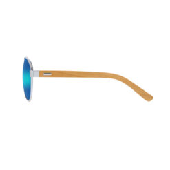 Okulary przeciwsłoneczne z filtrem UV400, posiadają lustrzane szkła oraz bambusowe zauszniki, etui z mikrofibry w komplecie, produkt wykonany z metalu i bambusa