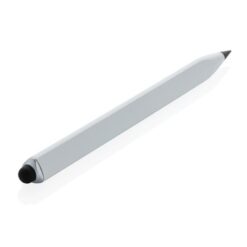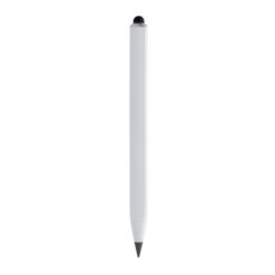 Ołówek, linijka, touch pen, wykonany aluminium z recyklingu, dzięki wykorzystaniu specjalnej wolnościerającej się grafitowej końcówki długość pisania ołówka to około 20 000 metrów w porównaniu z tradycyjnym ołówkiem którego długość pisania to około 200 metrów, notatki można zmazać standardową gumką do mazania, ślad węglowy produktu: 0,1 kg CO2