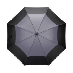 Parasol 27″, sztormowy, automatyczne otwieranie, metalowa rama, żebrowanie z włókna szklanego, uchwyt z PP, panele wykonane z 11,3 poddanych recyklingowi butelek PET (500 ml), dzięki zastosowaniu technologii fizycznych znaczników AWARE™ wykorzystane materiały są identyfikowalne z pochodzenia, 2% wpływów z każdego sprzedanego produktu z kolekcji Impact jest przekazywane na rzecz Water.org