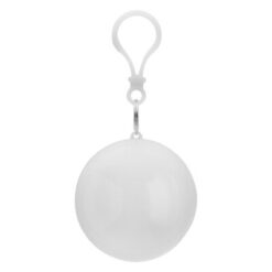 Peleryna przeciwdeszczowa w kulce o błyszczącym wykończeniu i karabińczykiem umożliwiającym przypinanie, produkt wykonany z ABS i PVC