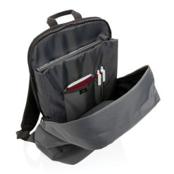 Plecak na laptopa 15,6″ chroniący przed kieszonkowcami, przestronna przegroda główna, wewnątrz kieszeń z ochroną RFID, pasek do zamocowania na walizce, wykonany z poliestrów pochodzących z recyklingu do produkcji których zostało ponownie wykorzystanych 19,9 butelek PET o pojemności 0,5 l, dzięki zastosowaniu technologii śledzącej AWARE™ wykorzystane włókna są identyfikowalne z pochodzenia, 2% wpływów z każdego sprzedanego produktu jest przekazywane na rzecz Water.org