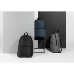 Plecak, przestronna przegroda główna, z przodu kieszeń zamykana na zamek, kieszeń na butelkę z boku, wykonany z 300D RPET, do którego produkcji zostało ponownie wykorzystanych 11,5 butelek PET (500 ml), dzięki zastosowaniu technologii śledzącej AWARE™ wykorzystane włókna są identyfikowalne z pochodzenia oraz wyprodukowane zostały zgodnie z ideą zrównoważonego rozwoju, 2% wpływów z każdego sprzedanego produktu z kolekcji Impact jest przekazywane na rzecz Water.org