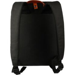 Plecak na laptopa 15″ wykonany z charakterystycznej tkaniny Oxford, która zwiększa odporność na zachlapania, kieszeń na laptopa, wewnętrzna kieszeń z siatkami, regulowane paski na ramię, uchwyt do zawieszania i zamknięcie na magnes, można w nim przenieść książki, laptopa oraz drobne zakupy lub przybory, produkt wykonany z RPET