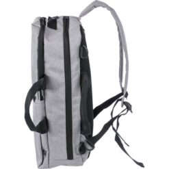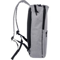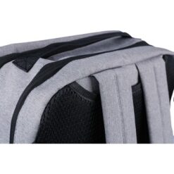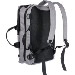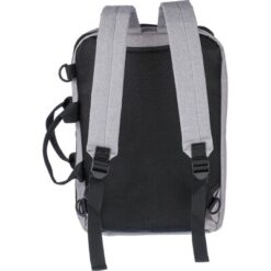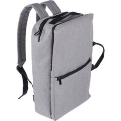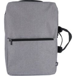 Plecak na laptopa 15″ z podszewką wewnątrz, pojemność plecaka to 1 l, posiada uchwyt do noszenia w dłoni oraz dwa boczne uchwyty, dwie duże przegrody zapinane na zamek, w tym jedna z przegrodą na laptopa 15″ zapinaną na rzep, z przodu mała kieszonka zapinana na zamek, wewnątrz oddzielny regulowany pasek na ramię do zamocowania na plastikowych haczykach (łącznie 4 plastikowe haczyki), za wyściełanym tyłem ukryte są dwa regulowane paski na ramiona, które umożliwiają noszenie torby jak plecaka, sprawdzi się w podróży, ikona RPET na metce, produkty wykonany z RPET, poliestru, siatki i pianki