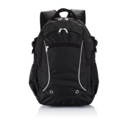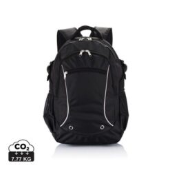 Plecak na laptopa 15,6″, wykonany z poliestru 1680D i żakardu, przednia kieszeń z organizerem na zamek błyskawiczny, przegroda główna na laptopa do 15,6″, odblaskowe elementy, siateczkowe kieszonki po obu stronach, nie zawiera PVC, ślad węglowy produktu: 7,77 kg CO2