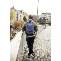 Plecak na laptopa 15,6″ B’RIGHT, wykonany z RPET, zgodny z certyfikatem GRS (Global RecycIed Standard), przegroda główna i kieszeń przednia na zamek błyskawiczny, miękka przegroda na laptopa, 2 kieszenie boczne, miękki tył i regulowane paski na ramię