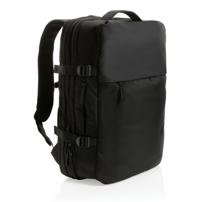 Plecak na laptopa 15,6″ Swiss Peak AWARE™ RPET z nadrukiem Twojego logo, materiał: pu, rpet, kolor: czarny