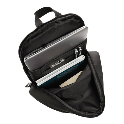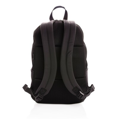 Plecak na laptopa 15,6″, przestronna przegroda główna, wewnątrz 2 kieszenie i 2 pętle na przybory do pisania, miękki tył, regulowane paski na ramiona, wnętrze z poliestru 210D, na zewnątrz PU, nie zawiera PVC, ślad węglowy produktu: 3,03 kg CO2