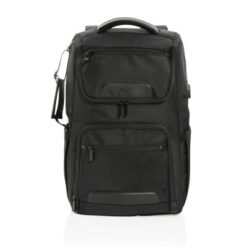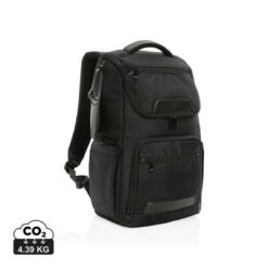 Plecak na laptopa Swiss Peak 15,6″, ochrona RFID z nadrukiem Twojego logo, materiał: rpet, kolor: czarny