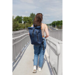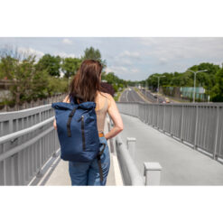 Plecak z przednią kieszenią i główną przegrodą na zamek błyskawiczny, wykonany z RPET, zgodny z certyfikatem GRS (Global RecycIed Standard), 2 kieszenie boczne, rozwijalna główna kieszeń zamykana na klamrę, która umożliwia zwiększanie pojemności plecaka oraz lepiej chroni przed czynnikami atmosferycznymi po zwinięciu, regulowane paski na ramię