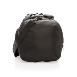 Plecak, torba sportowa, podróżna z ochroną RFID, wykonany z poliestru 1680D i 600D, pojemna przegroda główna z górnym zamknięciem na zamek błyskawiczny w kształcie litery U, boczna przegroda na buty, druga boczna kieszeń na zamek błyskawiczny, z tyłu dodatkowa kieszeń oraz kieszeń szybkiego dostępu, przednia kieszeń na zamek błyskawiczny z ochroną RFID, regulowane paski na ramię, nie zawiera PVC, ślad węglowy produktu: 7,81 kg CO2