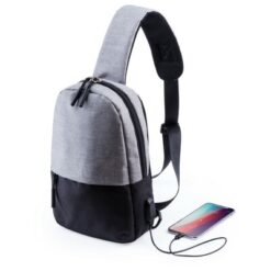 Plecak z miękkim paskiem na ramię, gniazdo USB do ładowania telefonów (power-bank nie jest dołączony), przegroda główna i kieszeń przednia na zamek
