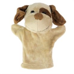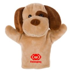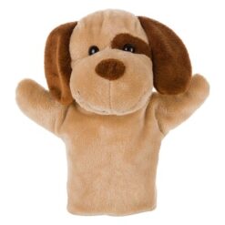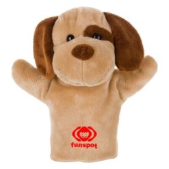 Pluszowa pacynka, pies | Obie z nadrukiem Twojego logo, materiał: plusz, kolor: jasnobrązowy