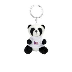 Brelok „panda” z białą koszulką pod nadruk, nieoznakowana koszulka z poliestru jest pakowana oddzielnie, produkt wykonany z pluszu