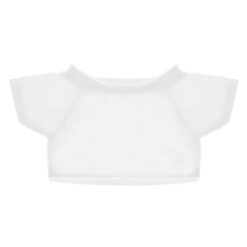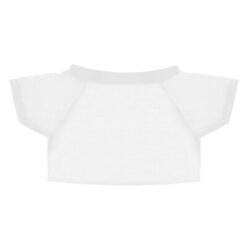 Brązowy miś z białą koszulką pod nadruk, nieoznakowana koszulka z poliestru jest pakowana oddzielnie, produkt wykonany z pluszu