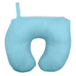 Poduszka podróżna 2 w 1, zagłówek podróżny z nadrukiem Twojego logo, materiał: pianka, spandex, zamsz, kolor: niebieski