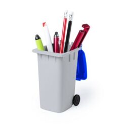 Pojemnik na przybory do pisania „kontener na śmieci” z nadrukiem Twojego logo, materiał: pp, kolor: szary
