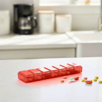 Półprzezroczysty pojemnik na tabletki z 7 przegrodami