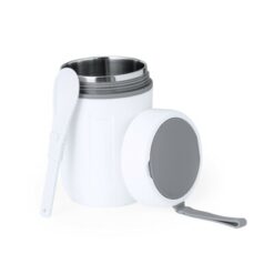 Pojemnik na żywność 500 ml, łyżeczka z nadrukiem Twojego logo, materiał: pp, stal nierdzewna, stal, kolor: biały