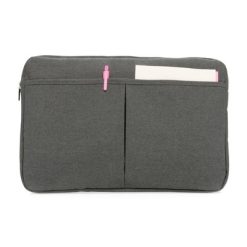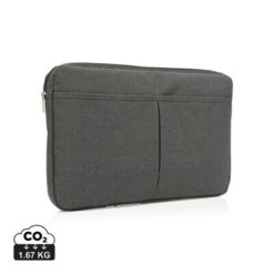 Pokrowiec na laptopa 15″, wykonany z poliestru 600D, posiada miejsce na ładowarkę, kable, klucze i inne akcesoria, nie zawiera PVC, ślad węglowy produktu: 1,67 kg CO2